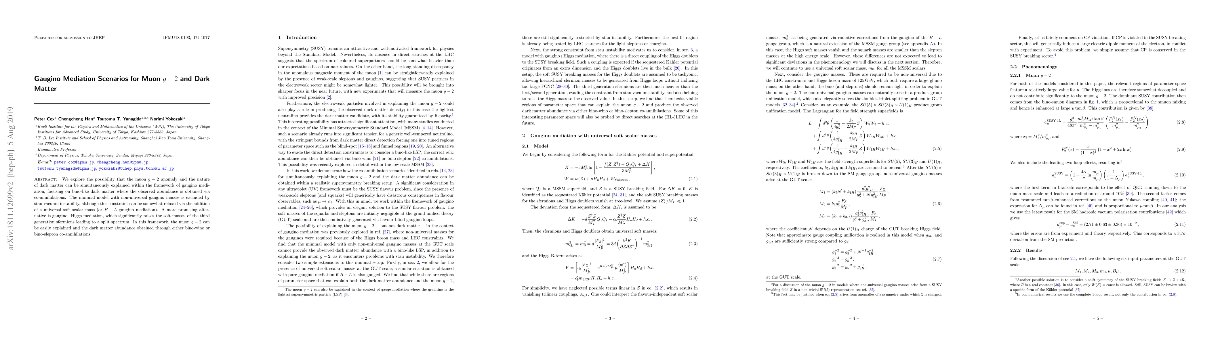 This paper investigates how gaugino mediation can explain both the muon $g-2$ anomaly and dark matter, focusing on bino-like dark matter via co-annihilations. While minimal non-universal gaugino masses are constrained by stau vacuum instability, gaugino+Higgs mediation offers a viable alternative by raising third-generation sfermion masses, leading to a split spectrum that accommodates both phenomena.
