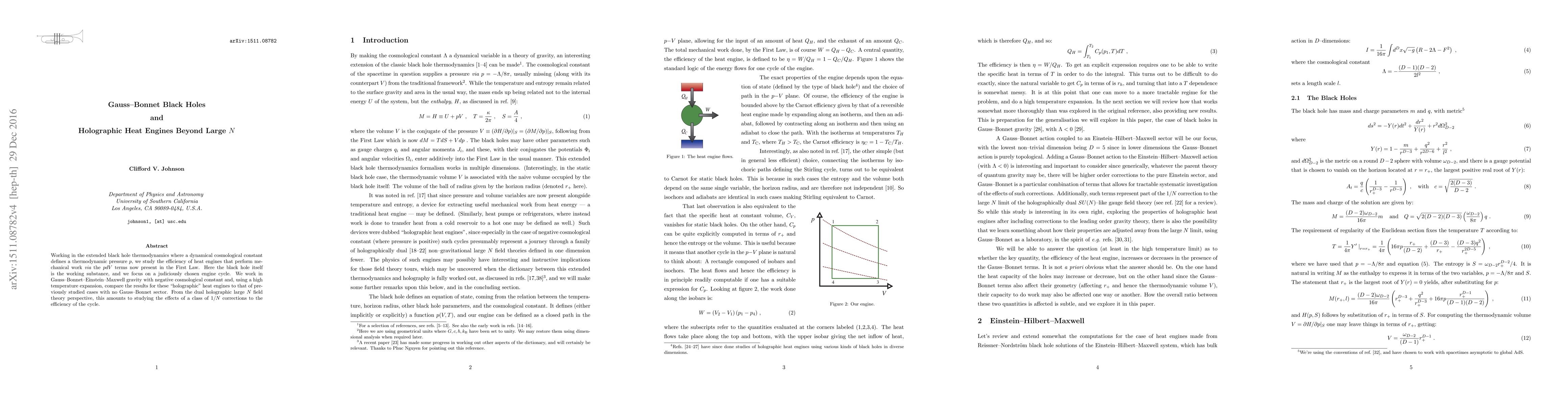 Working in the extended black hole thermodynamics where a dynamical cosmological constant defines a thermodynamic pressure p, we study the efficiency of heat engines that perform mechanical work via the pdV terms now present in the First Law. Here the black hole itself is the working substance, and we focus on a judiciously chosen engine cycle. We work in Gauss-Bonnet-Einstein-Maxwell gravity with negative cosmological constant and, using a high temperature expansion, compare the results for these `holographic' heat engines to that of previously studied cases with no Gauss-Bonnet sector. From the dual holographic large N field theory perspective, this amounts to studying the effects of a class of 1/N corrections to the efficiency of the cycle.