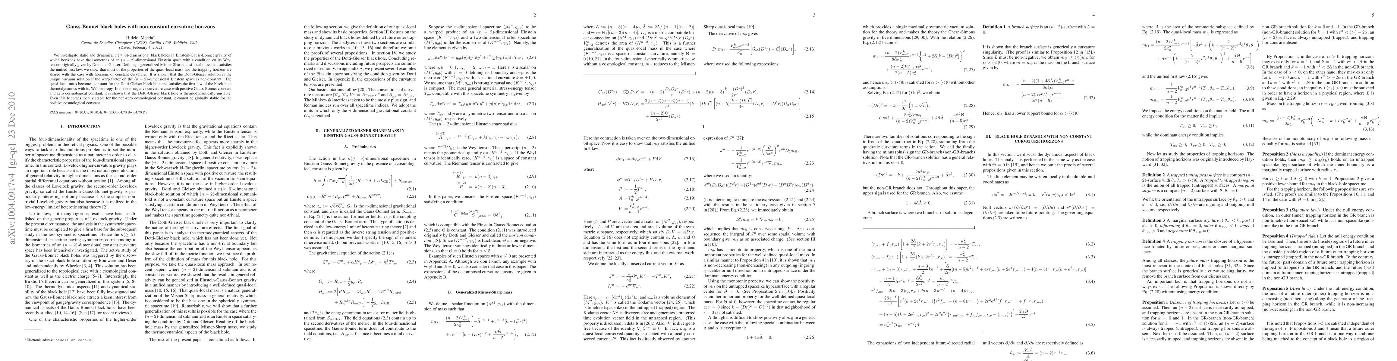 We investigate static and dynamical n(\ge 6)-dimensional black holes in Einstein-Gauss-Bonnet gravity of which horizons have the isometries of an (n-2)-dimensional Einstein space with a condition on its Weyl tensor originally given by Dotti and Gleiser. Defining a generalized Misner-Sharp quasi-local mass that satisfies the unified first law, we show that most of the properties of the quasi-local mass and the trapping horizon are shared with the case with horizons of constant curvature. It is shown that the Dotti-Gleiser solution is the unique vacuum solution if the warp factor on the (n-2)-dimensional Einstein space is non-constant. The quasi-local mass becomes constant for the Dotti-Gleiser black hole and satisfies the first law of the black-hole thermodynamics with its Wald entropy. In the non-negative curvature case with positive Gauss-Bonnet constant and zero cosmological constant, it is shown that the Dotti-Gleiser black hole is thermodynamically unstable. Even if it becomes locally stable for the non-zero cosmological constant, it cannot be globally stable for the positive cosmological constant.