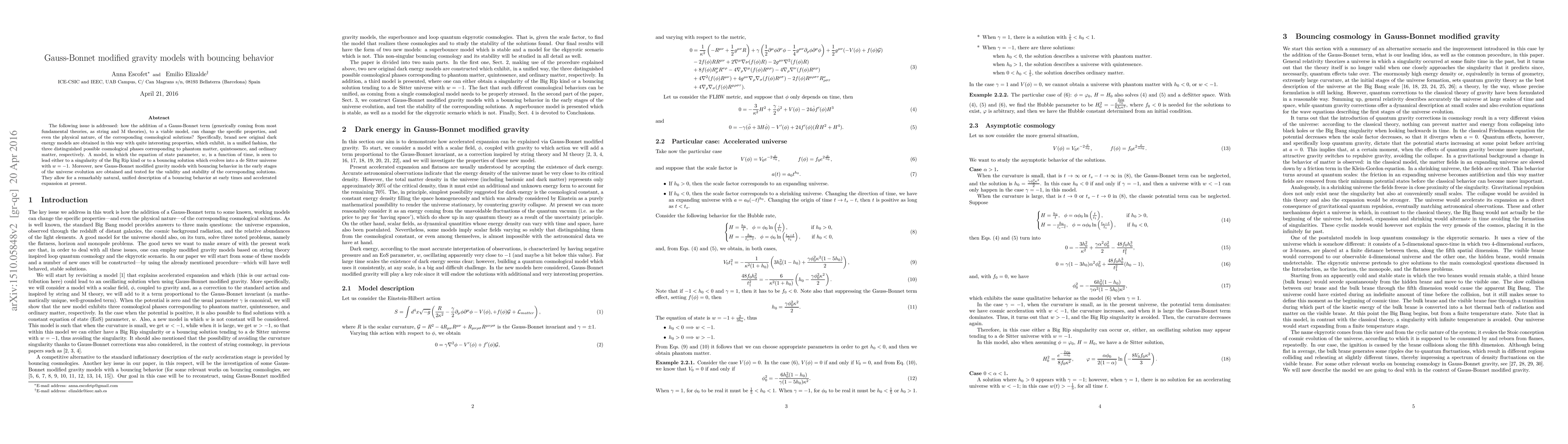 The development of a new class of modified Gauss-Bonnet gravity models that can reproduce the observed acceleration of the universe