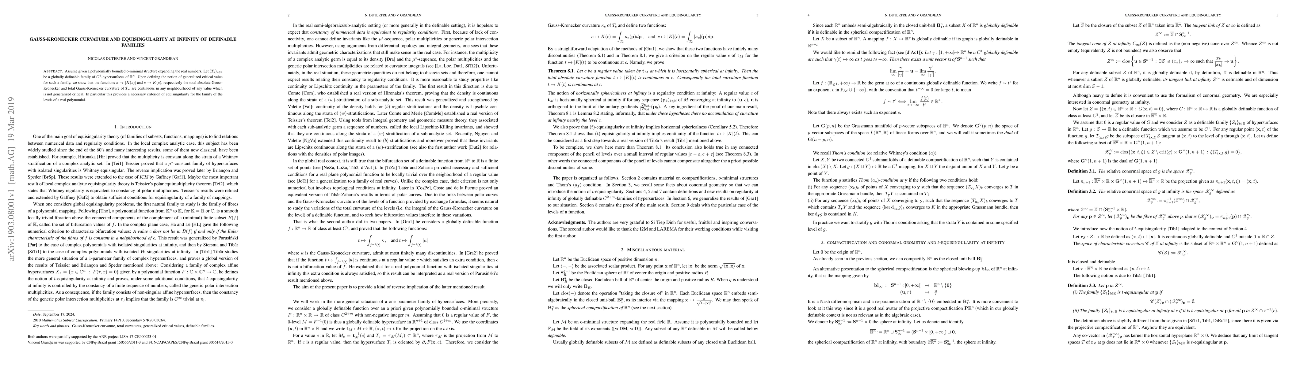 This research paper introduces the concept of generalized critical values for globally definable one-parameter families of C^2-hypersurfaces in o-minimal structures. It demonstrates that the total absolute and total Gauss-Kronecker curvatures are continuous in neighborhoods of non-generalized critical values, providing a necessary criterion for equisingularity in real polynomial level sets.