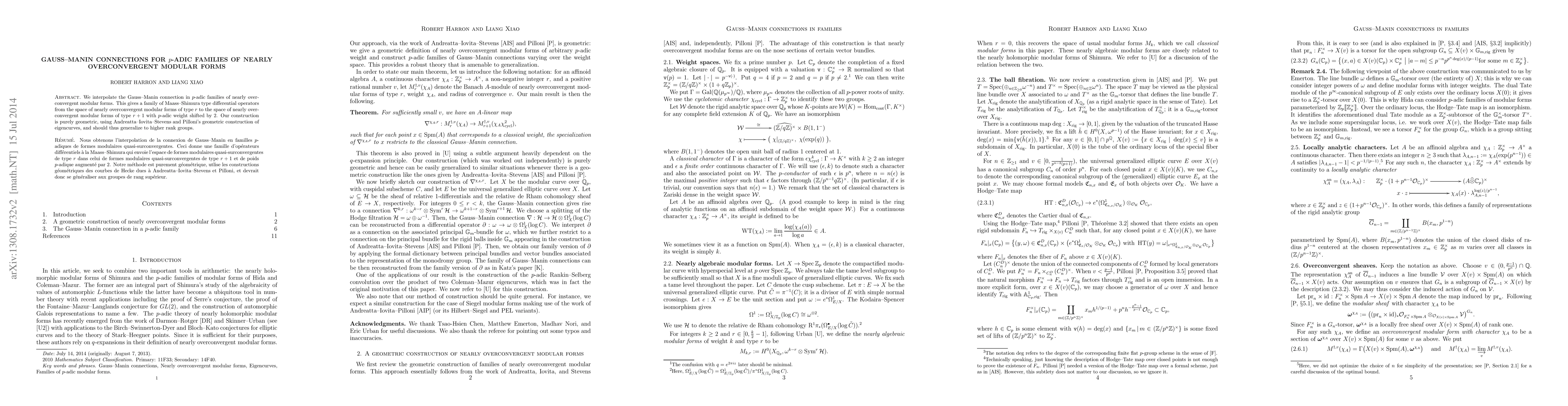 This paper constructs a Gauss-Manin connection for p-adic families of nearly overconvergent modular forms, yielding Maass-Shimura type differential operators. The method relies on a purely geometric approach involving eigencurves and is expected to generalize to higher rank groups.