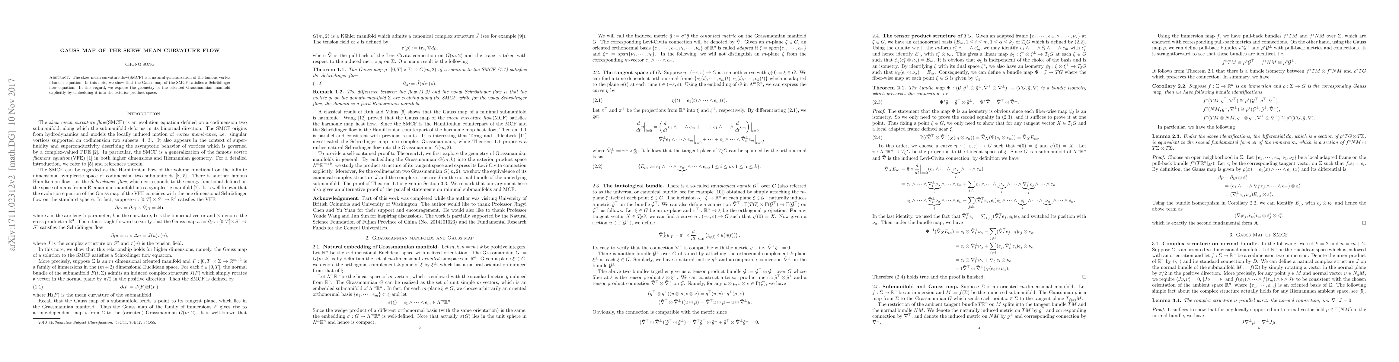 This paper demonstrates that the Gauss map of the skew mean curvature flow adheres to a Schrödinger flow equation, and it explores the geometry of the oriented Grassmannian manifold by embedding it into the exterior product space.