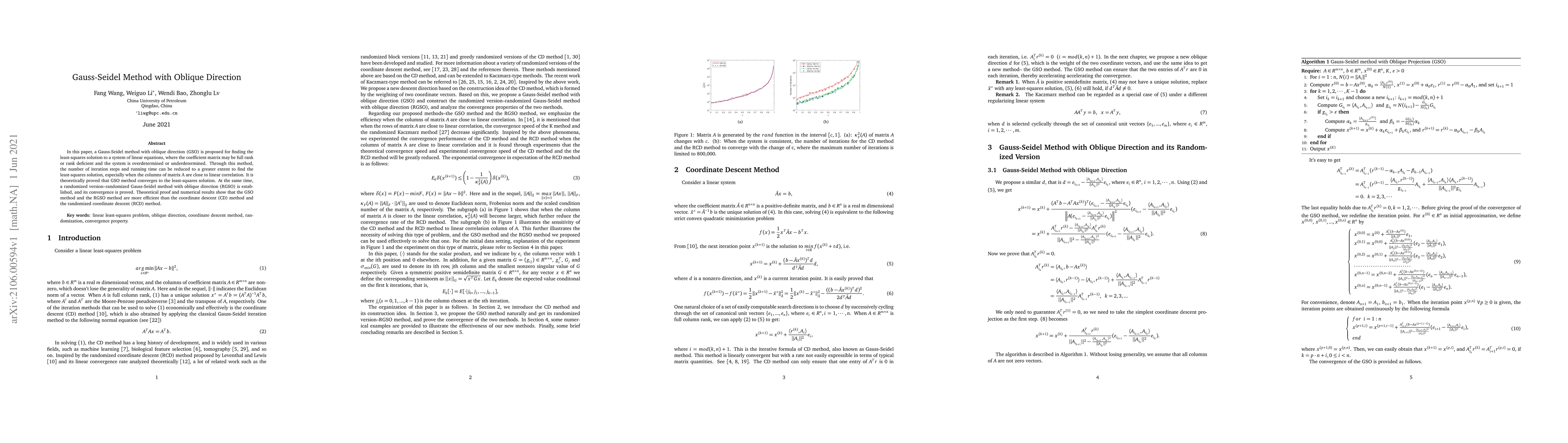 This paper proposes a Gauss-Seidel method with oblique direction (GSO) to efficiently find the least-squares solution for linear systems, showing reduced iteration steps and running time. A randomized version (RGSO) is also introduced, both proving to outperform coordinate descent methods.