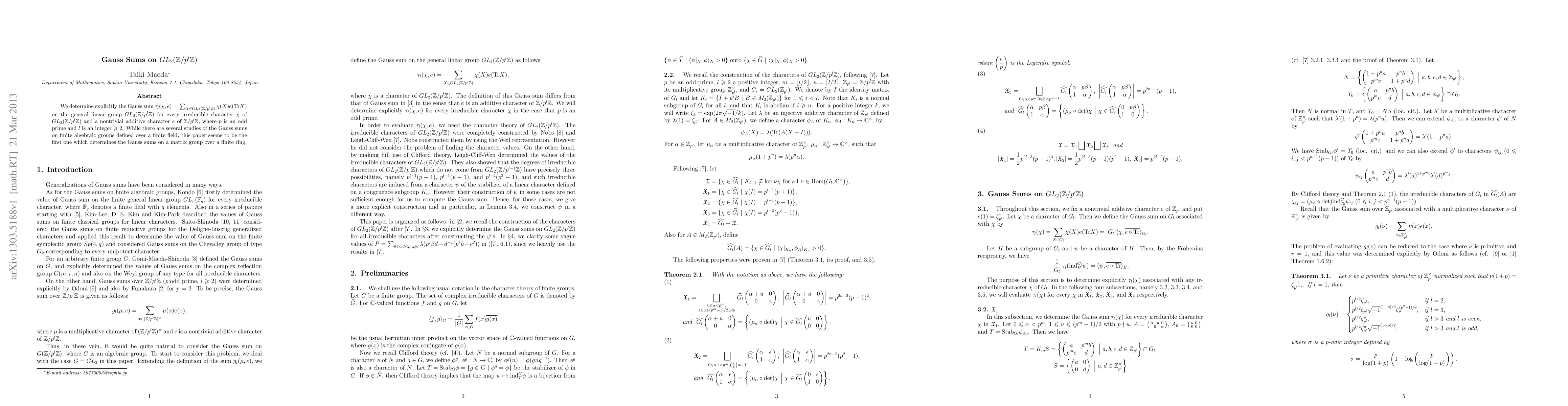 This paper explicitly determines Gauss sums on the general linear group $GL_2(\mathbb{Z}/p^l\mathbb{Z})$ for all irreducible characters, offering a novel approach as it focuses on a matrix group over a finite ring rather than a finite field. This marks a significant contribution to the study of Gauss sums in algebraic groups.