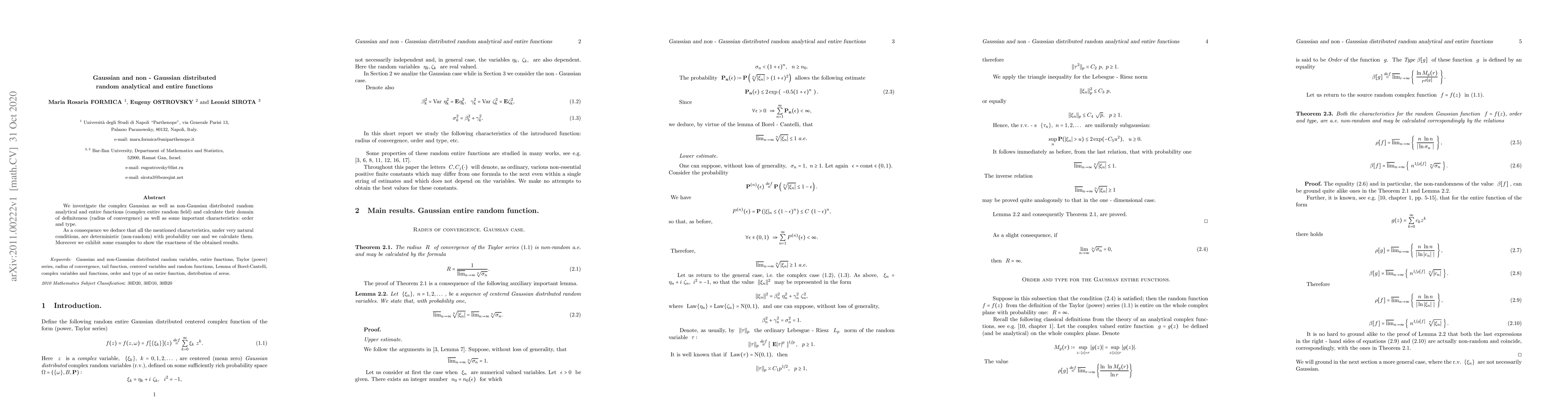 This paper investigates Gaussian and non-Gaussian distributed random analytical and entire functions, determining their radius of convergence and characteristics like order and type. It concludes that these characteristics are deterministic under natural conditions and provides examples to validate the findings.