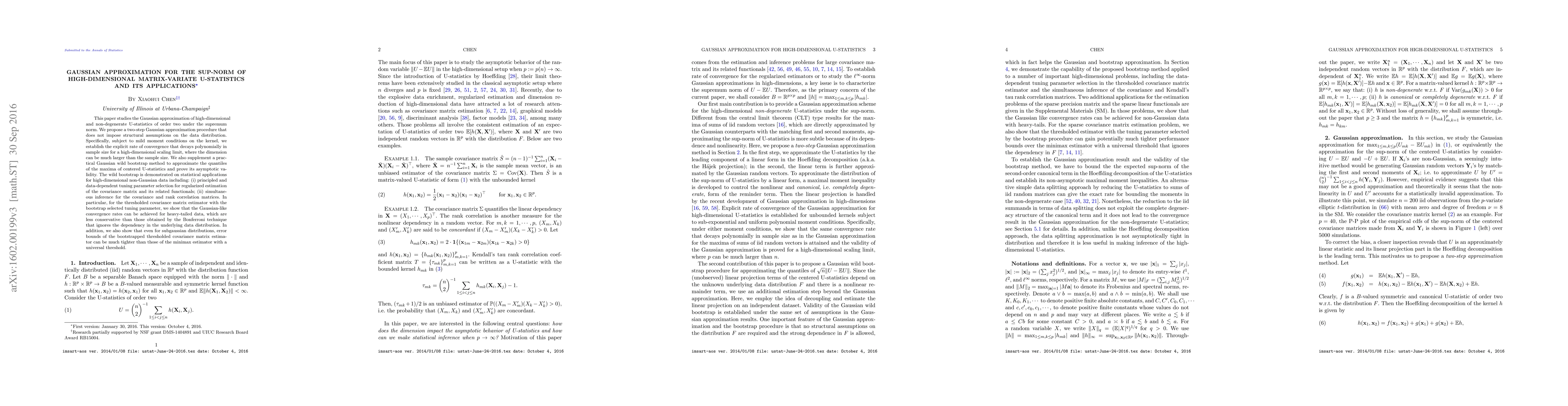 This paper proposes a Gaussian approximation method for high-dimensional matrix-variate U-statistics under the sup-norm, demonstrating its application in tuning parameter selection and simultaneous inference for covariance matrices. The method achieves Gaussian-like convergence rates even for heavy-tailed data, outperforming traditional Bonferroni techniques.