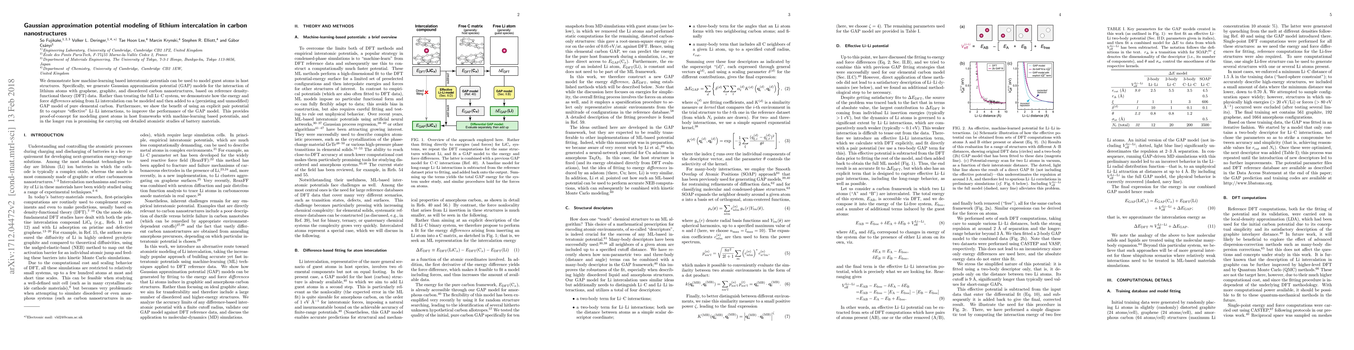 This paper demonstrates the use of Gaussian approximation potential (GAP) models to accurately simulate lithium intercalation in carbon nanostructures, based on density-functional theory data. It shows how the energy and force differences from Li intercalation can be modeled and added to an existing GAP model of pure carbon, enhancing the model's performance with an explicit pair potential for Li-Li interactions.