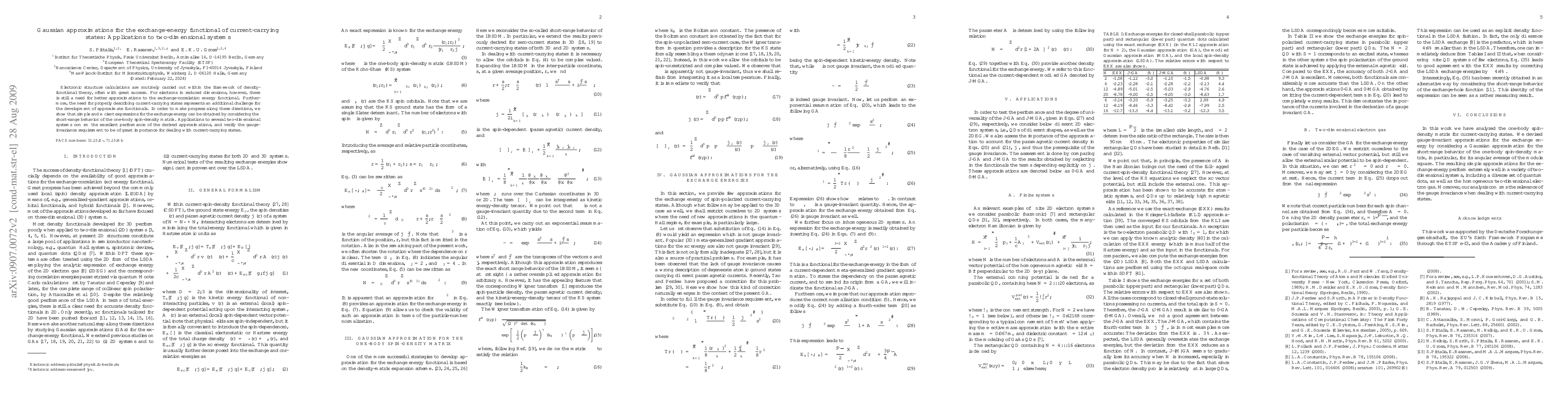 This paper develops Gaussian approximations for the exchange-energy functional tailored for current-carrying states in two-dimensional systems, demonstrating their effectiveness through applications and emphasizing the importance of gauge invariance. The proposed approximations show excellent performance in describing the electronic structure of such systems.