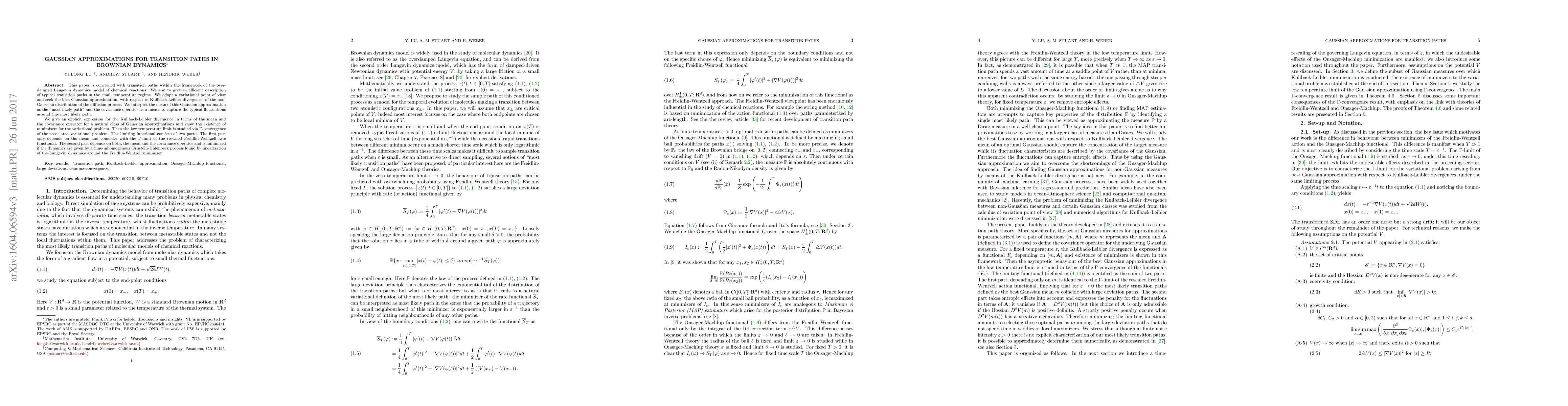 The paper introduces a novel framework for approximating transition paths using Gaussian distributions, providing explicit expressions and convergence results under Γ-convergence.