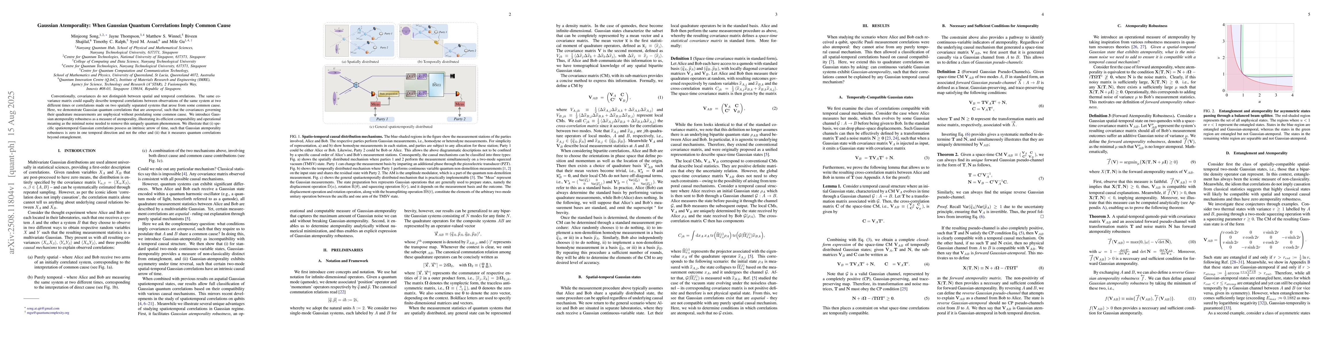 Conventionally, covariances do not distinguish between spatial and temporal correlations. The same covariance matrix could equally describe temporal correlations between observations of the same system at two different times or correlations made on two spatially separated systems that arose from some common cause. Here, we demonstrate Gaussian quantum correlations that are atemporal, such that the covariances governing their quadrature measurements are unphysical without postulating some common cause. We introduce Gaussian atemporality robustness as a measure of atemporality, illustrating its efficient computability and operational meaning as the minimal noise needed to remove this uniquely quantum phenomenon. We illustrate that (i) specific spatiotemporal Gaussian correlations possess an intrinsic arrow of time, such that Gaussian atemporality robustness is zero in one temporal direction and not the other and (ii) that it measures quantum correlations beyond entanglement.