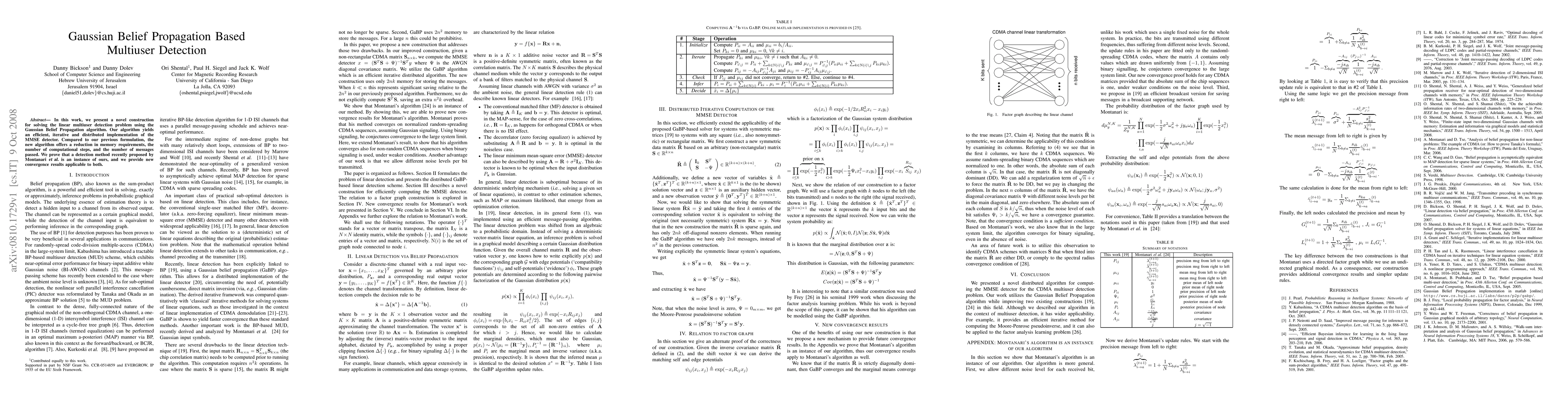 This paper introduces a Gaussian Belief Propagation algorithm for solving the multiuser detection problem, offering an efficient, iterative, and distributed MMSE detector. It demonstrates improved memory usage, fewer computation steps, and reduced message exchanges compared to recent methods.