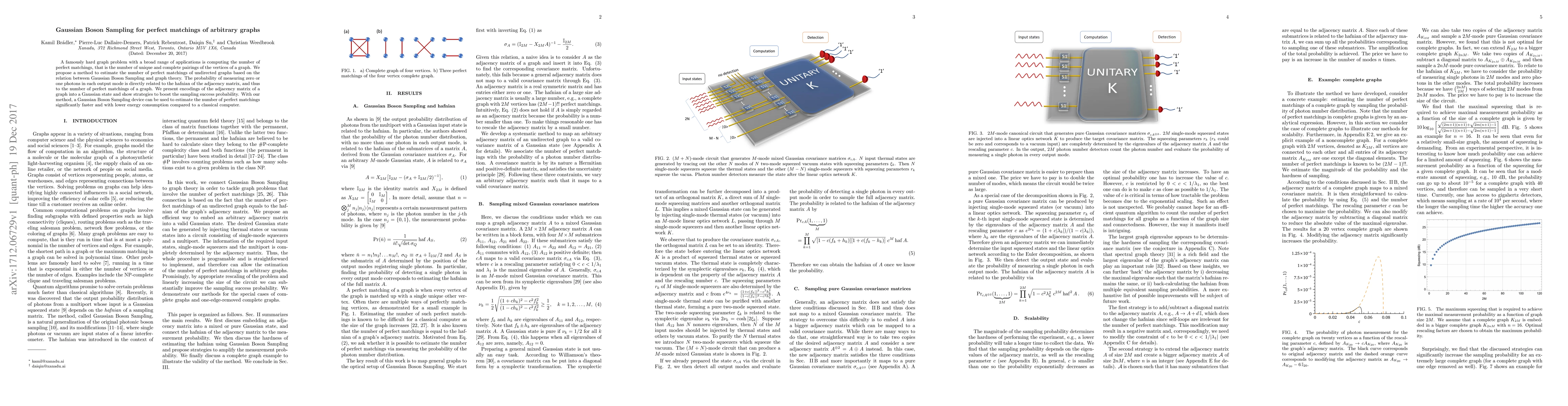 This paper proposes a method using Gaussian Boson Sampling to estimate the number of perfect matchings in undirected graphs, leveraging the connection between the hafnian of the adjacency matrix and photon measurements in Gaussian states. The approach promises faster and more energy-efficient computation compared to classical methods.