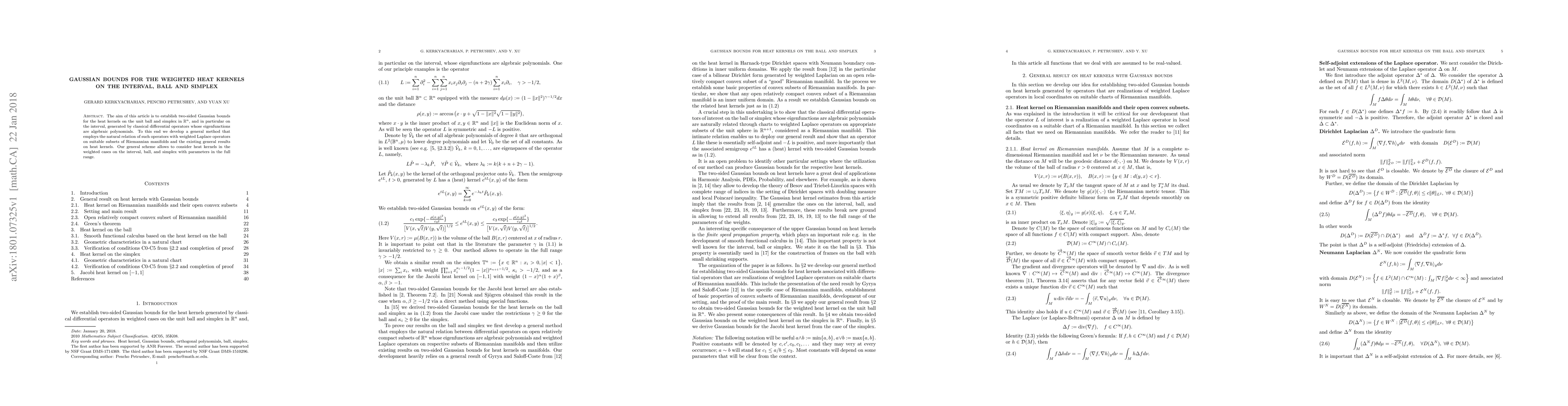 This paper establishes two-sided Gaussian bounds for heat kernels on the unit ball, simplex, and interval, generated by classical differential operators with algebraic polynomial eigenfunctions. The authors develop a general method linking these operators to weighted Laplace operators on Riemannian manifolds to achieve their results.