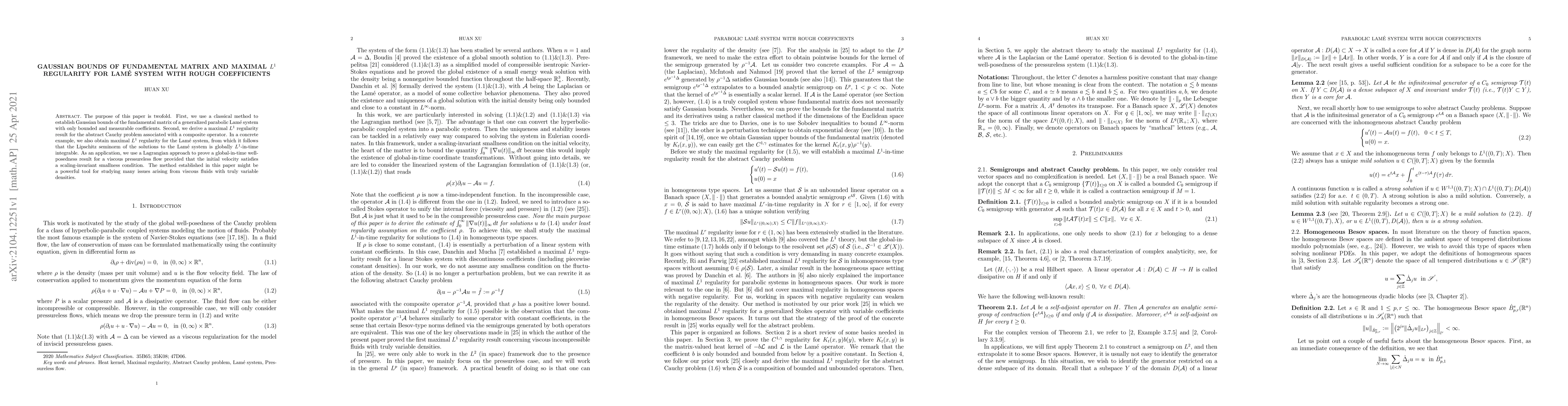 This paper establishes Gaussian bounds for the fundamental matrix of a generalized parabolic Lam\'{e} system with rough coefficients and derives maximal $L^1$ regularity for the associated abstract Cauchy problem. It also proves global-in-time well-posedness for a viscous pressureless flow under a smallness condition on the initial velocity.