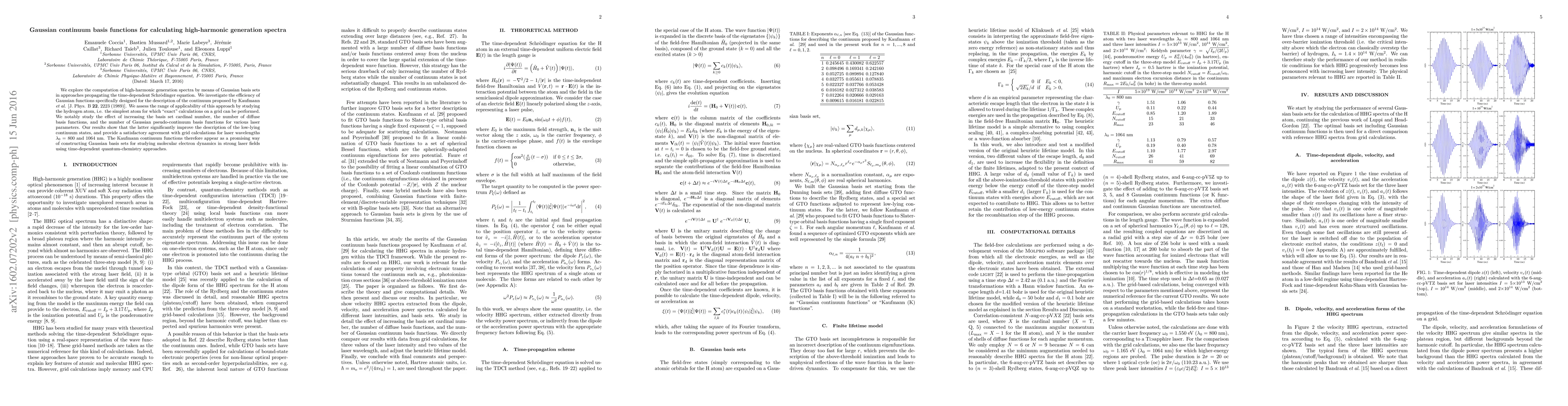 This paper investigates the use of Gaussian continuum basis functions to compute high-harmonic generation spectra, demonstrating improved accuracy for low-lying continuum states compared to grid calculations, particularly for laser wavelengths of 800 and 1064 nm. The study suggests that these functions are promising for time-dependent quantum-chemistry approaches in strong laser fields.