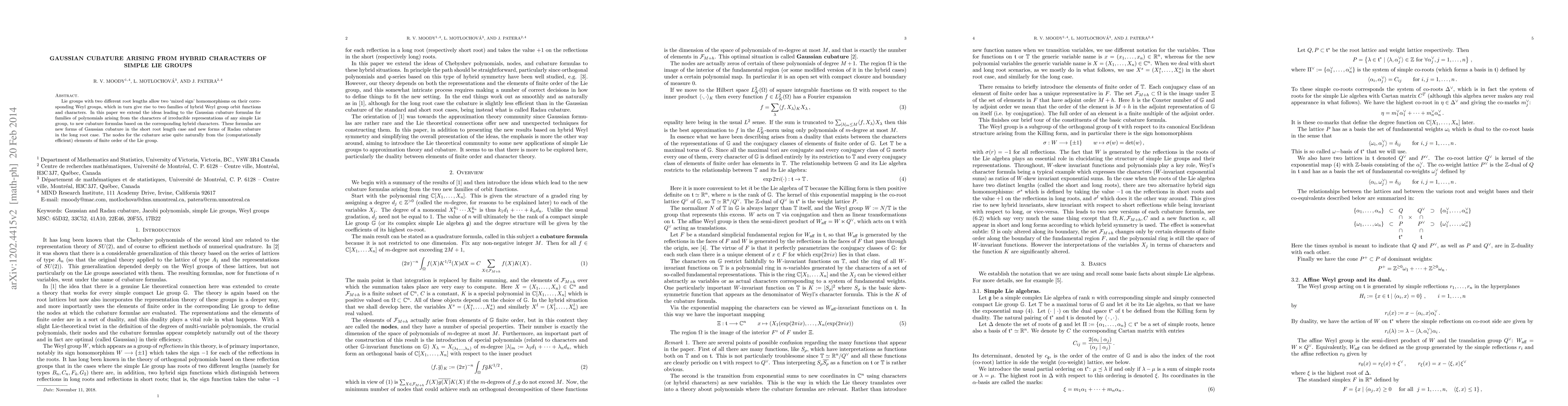 This paper develops Gaussian cubature formulas based on hybrid characters of simple Lie groups with distinct root lengths, introducing new forms of Gaussian cubature for short roots and new Radau cubature for long roots, with nodes derived from finite order elements of the Lie group.
