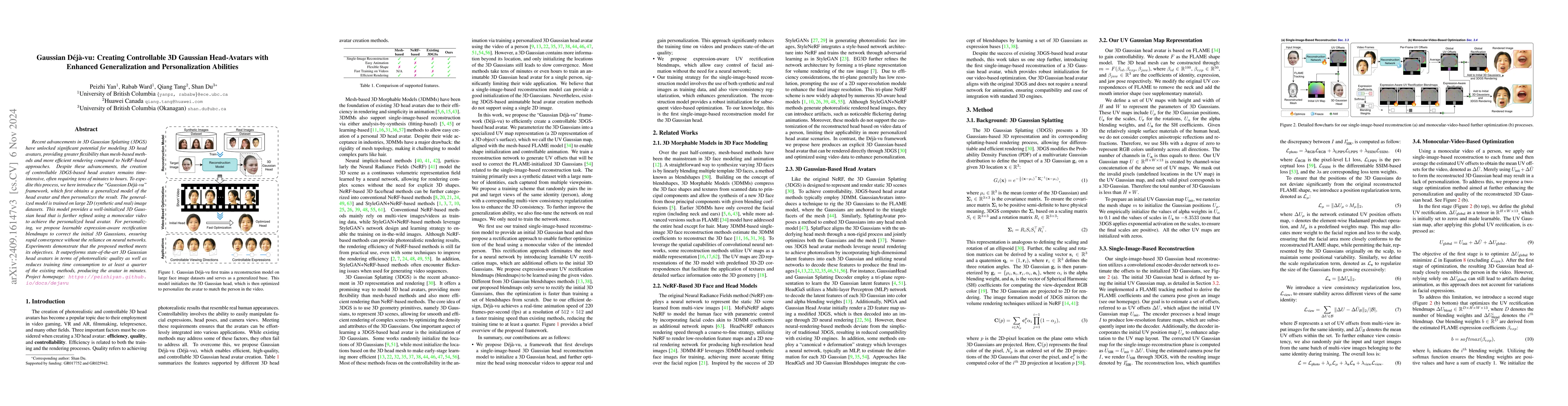 The paper introduces the "Gaussian Déjà-vu" framework to create controllable 3D Gaussian head avatars rapidly. It leverages a generalized model trained on large 2D datasets to achieve quick initialization and personalizes the avatar using learnable expression-aware rectification blendmaps, significantly reducing training time.