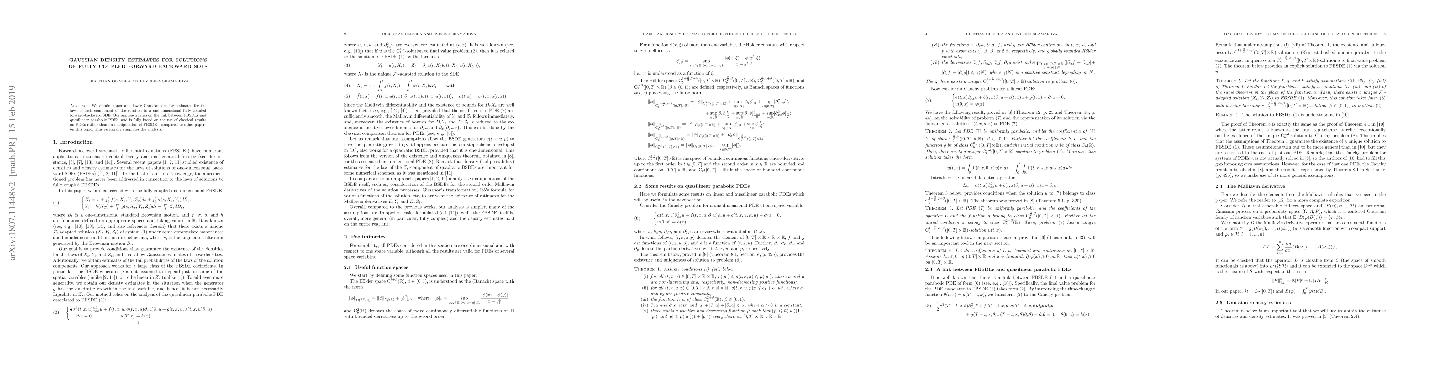 This paper provides Gaussian density estimates for the components of solutions to a one-dimensional fully coupled forward-backward stochastic differential equation (FBSDE) by leveraging the connection between FBSDEs and quasilinear parabolic partial differential equations (PDEs), simplifying the analysis through classical PDE results rather than direct FBSDE manipulation.