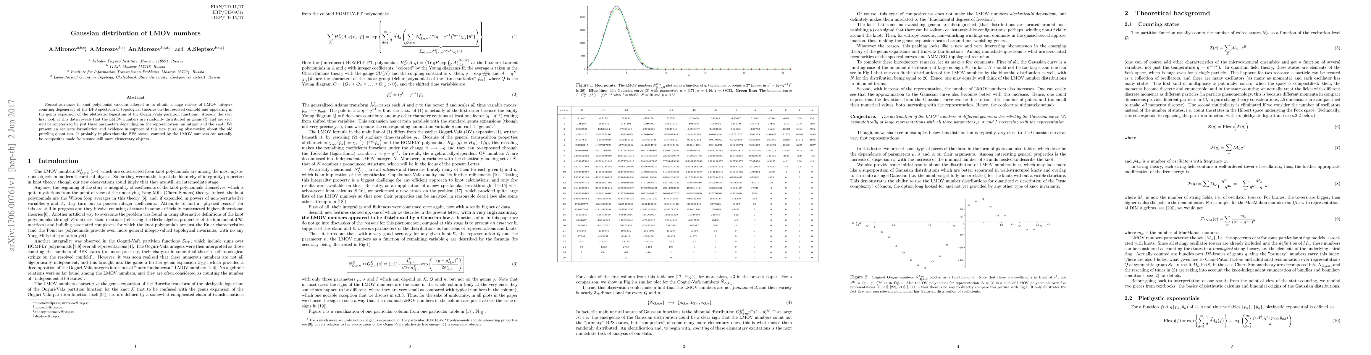 This research reveals that LMOV integers, derived from knot polynomial calculus and related to BPS spectrum degeneracies in topological theories, exhibit a Gaussian distribution in genus. The findings suggest these integers may be composites of more fundamental objects, parameterized by three key factors.