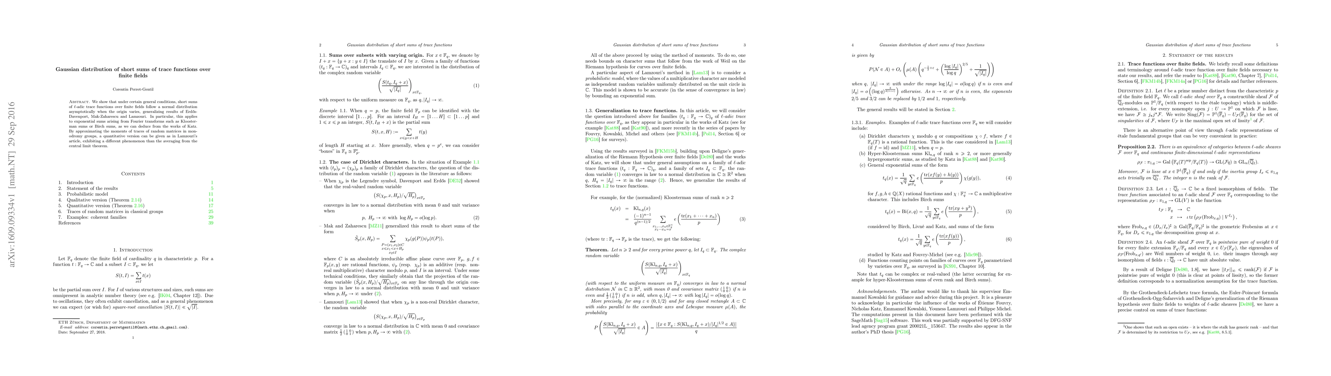 We show that under certain general conditions, short sums of $\ell$-adic trace functions over finite fields follow a normal distribution asymptotically when the origin varies, generalizing results of Erd\H{o}s-Davenport, Mak-Zaharescu and Lamzouri. In particular, this applies to exponential sums arising from Fourier transforms such as Kloosterman sums or Birch sums, as we can deduce from the works of Katz. By approximating the moments of traces of random matrices in monodromy groups, a quantitative version can be given as in Lamzouri's article, exhibiting a different phenomenon than the averaging from the central limit theorem.