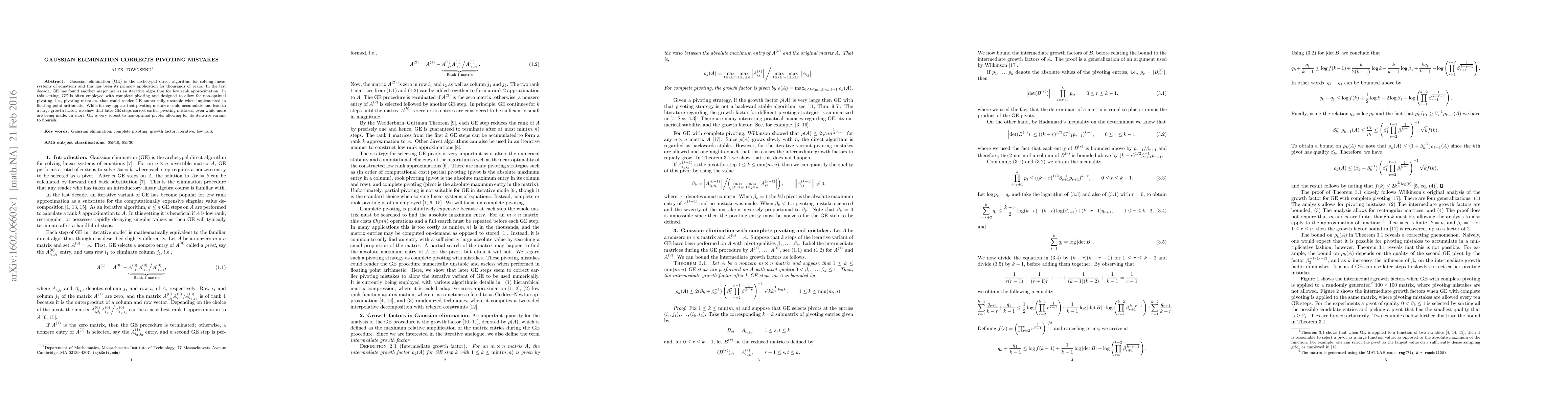This paper demonstrates that Gaussian elimination (GE) is robust to pivoting mistakes, even when employed iteratively for low-rank approximation. Despite potential numerical instability from non-optimal pivots, GE corrects earlier mistakes through subsequent steps, ensuring its effectiveness.
