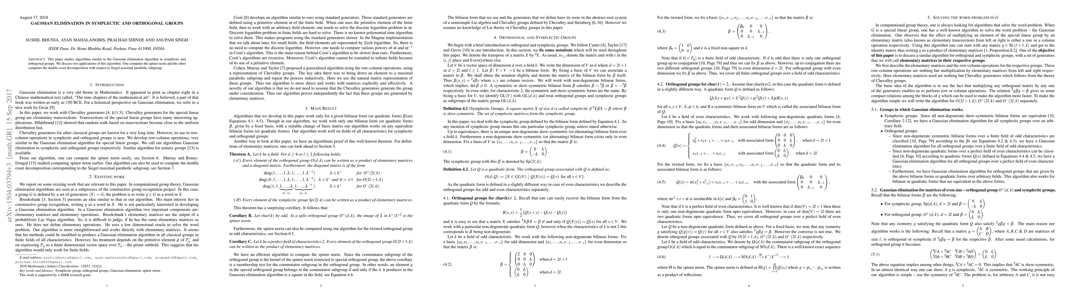 This paper introduces a Gaussian elimination algorithm for symplectic and orthogonal groups, with applications in computing spinor norms and double coset decompositions, advancing computational group theory.