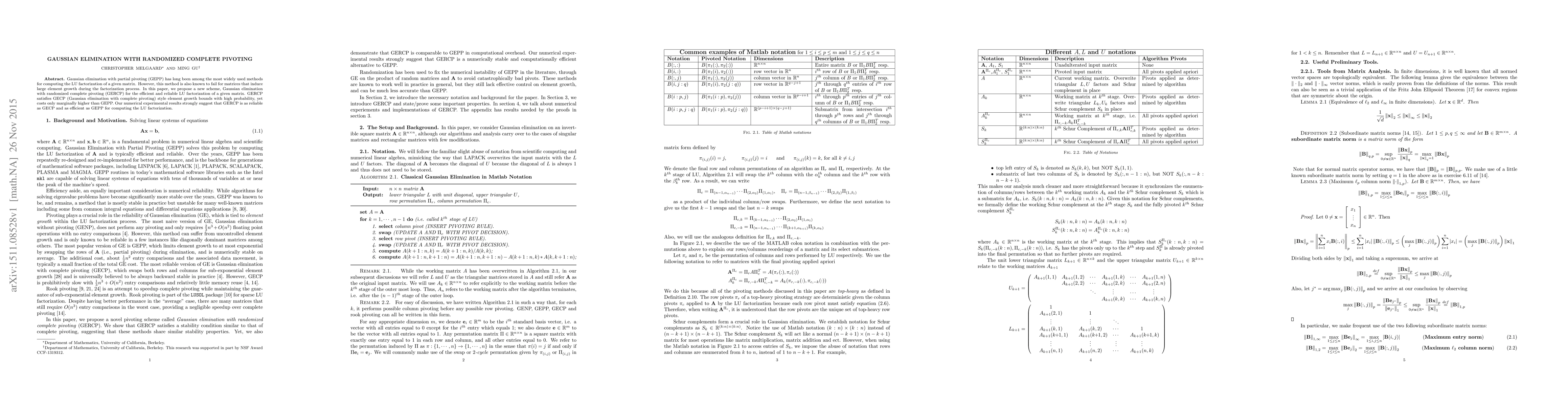 This paper proposes Gaussian elimination with randomized complete pivoting (GERCP) to improve LU factorization reliability while maintaining efficiency. GERCP achieves GECP-style element growth bounds with high probability at a marginal cost increase compared to Gaussian elimination with partial pivoting (GEPP).