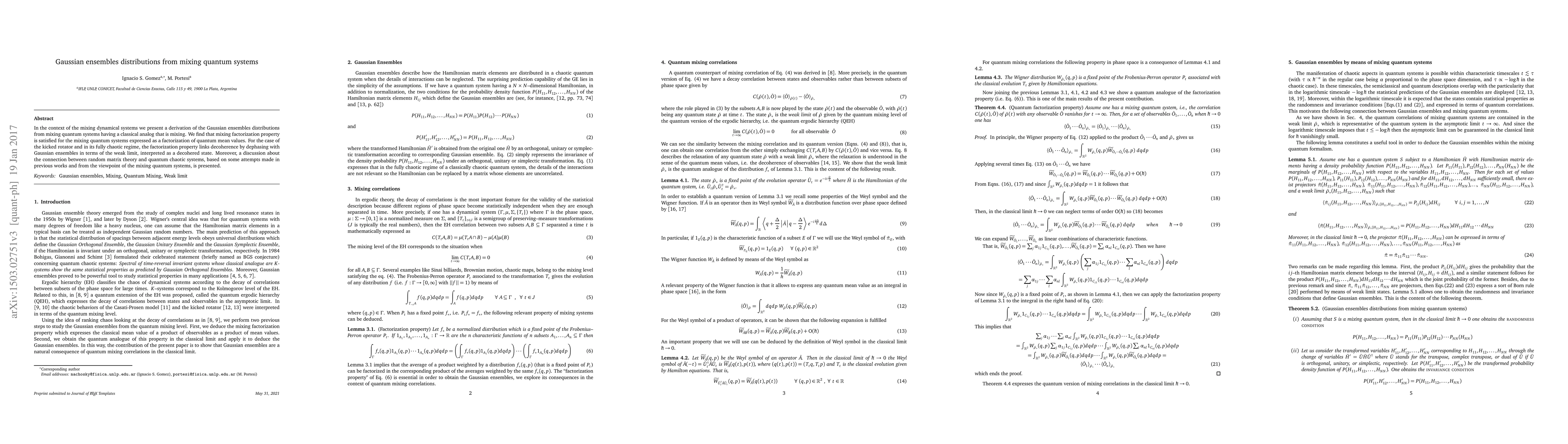 This paper derives Gaussian ensembles from mixing quantum systems, showing that the mixing factorization property holds for these systems. It links decoherence in the kicked rotator's chaotic regime to Gaussian ensembles and discusses the connection between random matrix theory and quantum chaos.