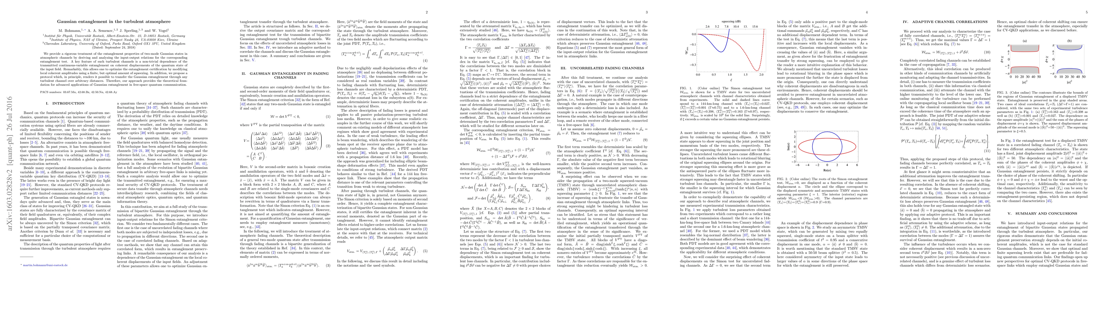 This paper rigorously analyzes the entanglement properties of Gaussian states in turbulent atmospheric channels, revealing how coherent displacements affect transmitted entanglement. It proposes an optimal protocol for entanglement certification and transfer over arbitrary distances, laying the theoretical groundwork for advanced Gaussian entanglement applications in free-space quantum communication.