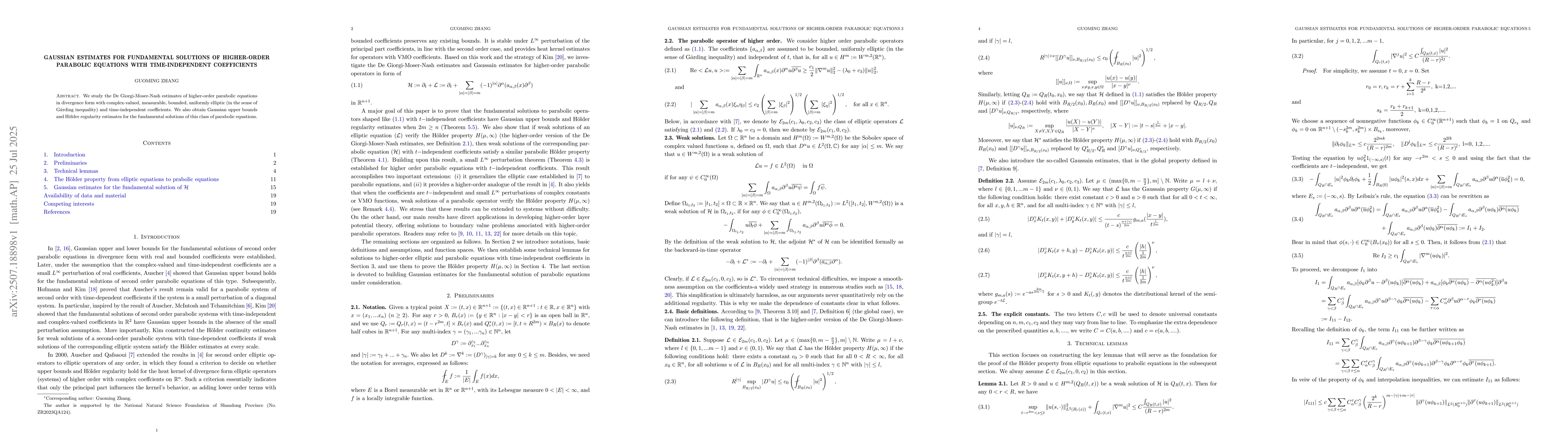 We study the De Giorgi-Moser-Nash estimates of higher-order parabolic equations in divergence form with complex-valued, measurable, bounded, uniformly elliptic (in the sense of G$\mathring{a}$rding inequality) and time-independent coefficients. We also obtain Gaussian upper bounds and H\"{o}lder regularity estimates for the fundamental solutions of this class of parabolic equations.