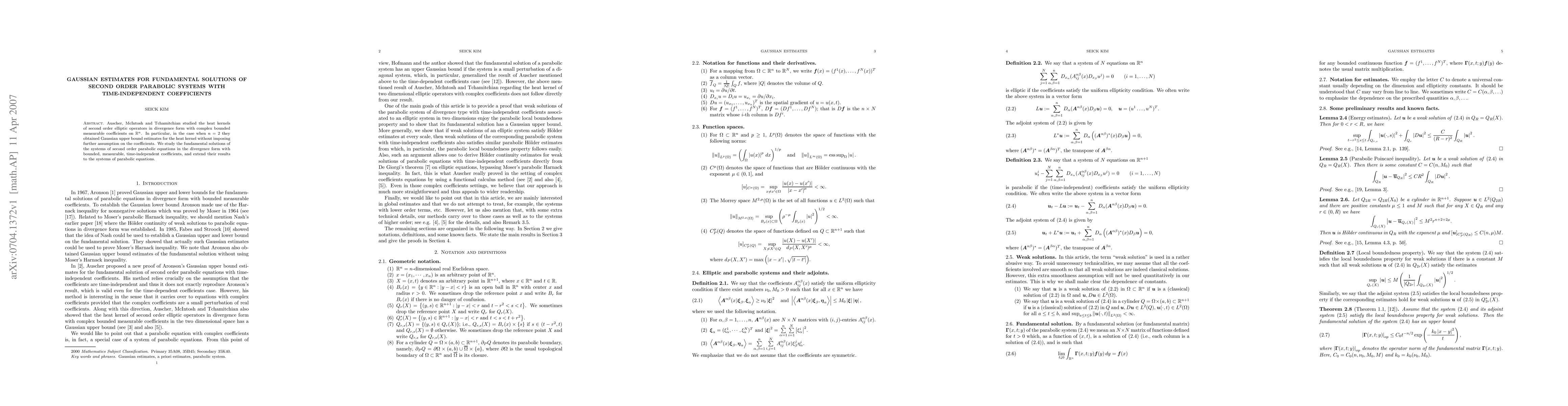 The paper extends previous work on heat kernels of elliptic operators to fundamental solutions of parabolic systems with time-independent coefficients, utilizing energy estimates and parabolic Poincaré inequalities.
