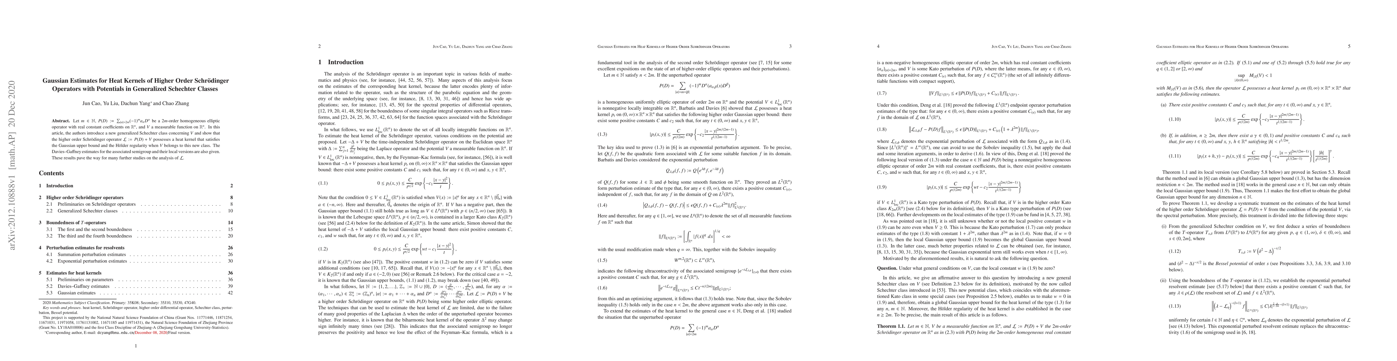 Let $m\in\mathbb N$, $P(D):=\sum_{|\alpha|=2m}(-1)^m a_\alpha D^\alpha$ be a $2m$-order homogeneous elliptic operator with real constant coefficients on $\mathbb{R}^n$, and $V$ a measurable function on $\mathbb{R}^n$. In this article, the authors introduce a new generalized Schechter class concerning $V$ and show that the higher order Schr\"odinger operator $\mathcal{L}:=P(D)+V$ possesses a heat kernel that satisfies the Gaussian upper bound and the H\"older regularity when $V$ belongs to this new class. The Davies--Gaffney estimates for the associated semigroup and their local versions are also given. These results pave the way for many further studies on the analysis of $\mathcal{L}$.