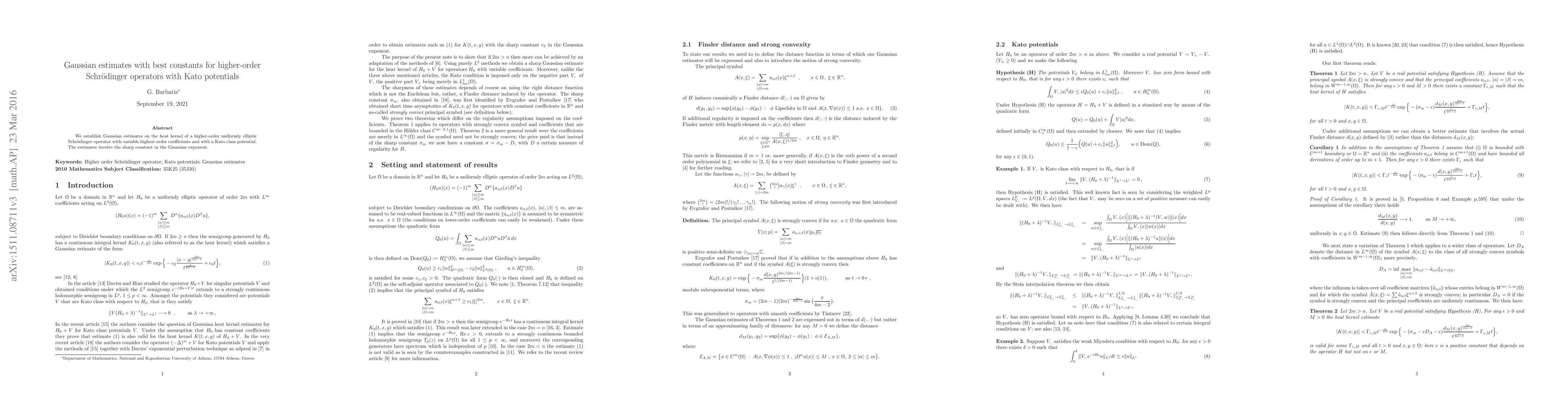 This research derives precise Gaussian estimates for heat kernels of higher-order Schrödinger operators with variable top-order coefficients and Kato class potentials, identifying optimal constants in the Gaussian exponent.