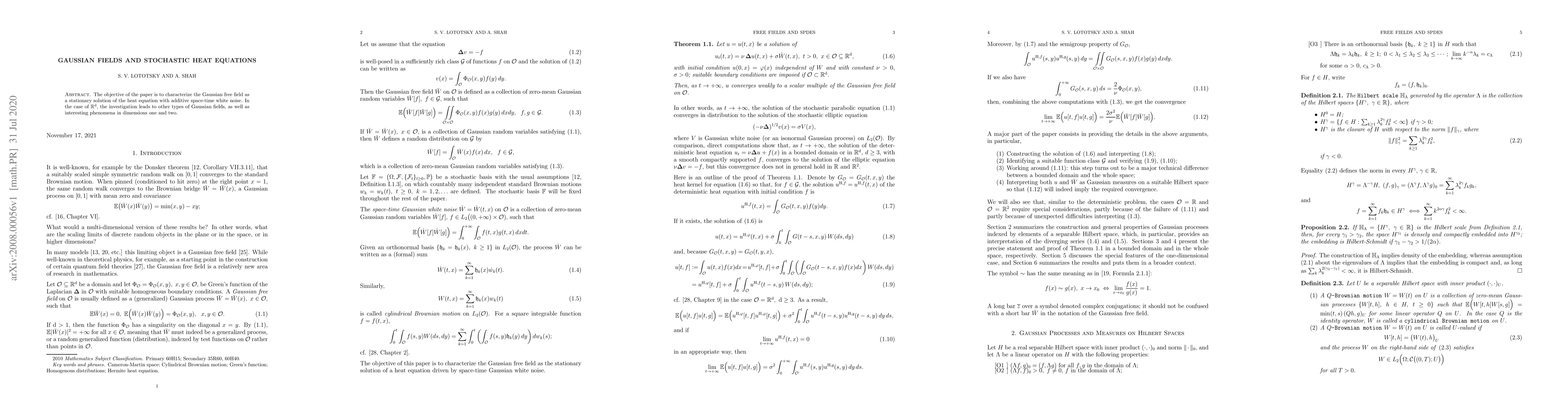 The objective of the paper is to characterize the Gaussian free field as a stationary solution of the heat equation with additive space-time white noise. In the case of whole space, the investigation leads to other types of Gaussian fields, as well as interesting phenomena in dimensions one and two.