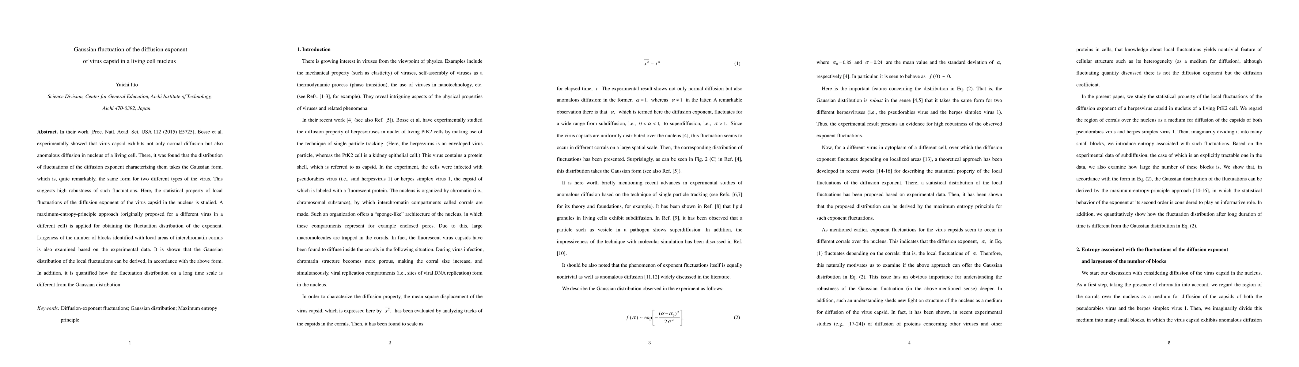 This paper investigates the Gaussian fluctuation of the diffusion exponent of virus capsids in living cell nuclei, demonstrating that the distribution of these fluctuations follows a Gaussian form for different virus types, indicating robustness. Using a maximum-entropy-principle approach, the study confirms the Gaussian nature of local fluctuations and quantifies deviations from this distribution over long time scales.