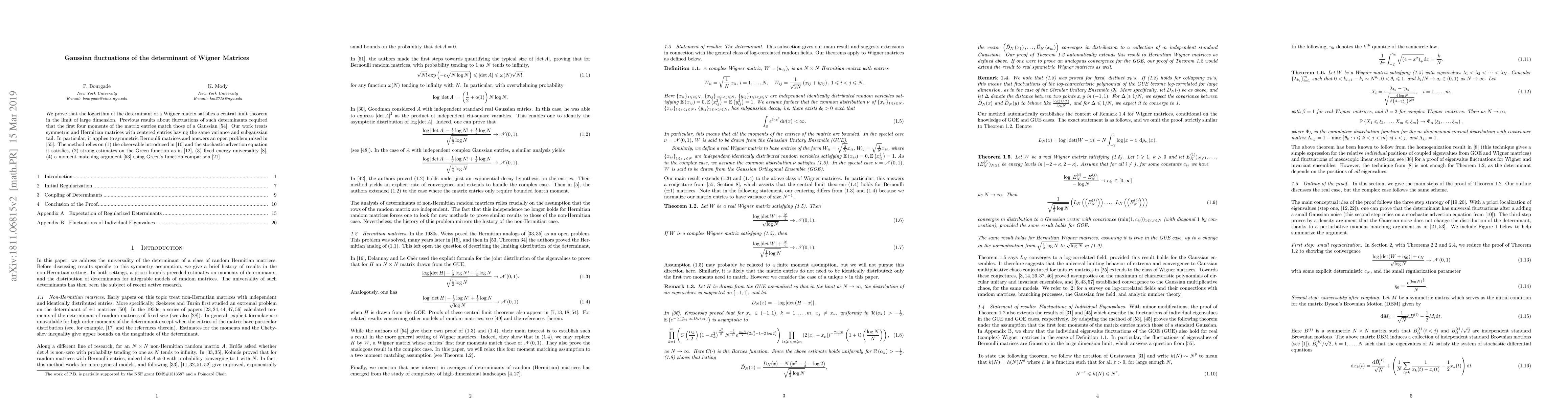This paper demonstrates a central limit theorem for the logarithm of the determinant of Wigner matrices, extending applicability beyond Gaussian-distributed entries to matrices with subgaussian tails, resolving an open question raised by Tao and Vu.