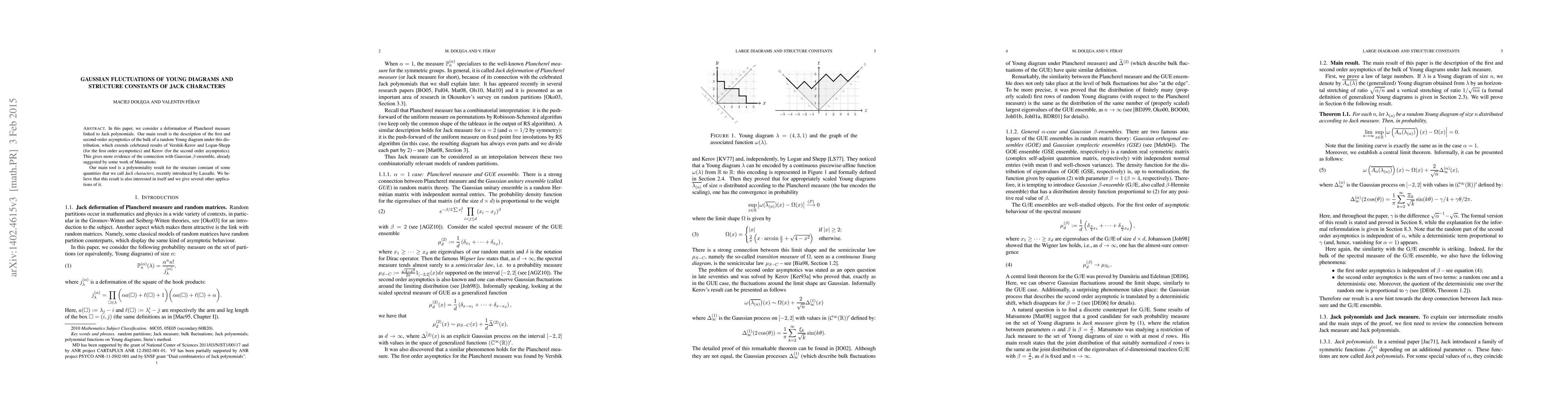 This paper explores a deformed Plancherel measure connected to Jack polynomials, providing the first and second-order asymptotics for the bulk of random Young diagrams. It extends previous results and suggests a link to Gaussian β-ensembles, supported by a polynomiality result for Jack characters' structure constants.