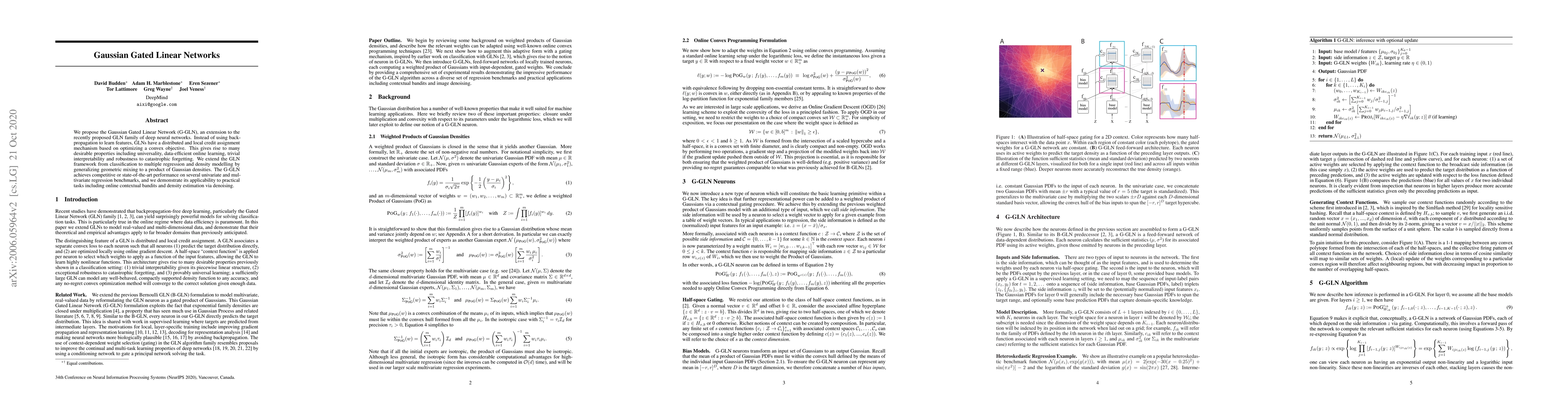 The Gaussian Gated Linear Network (G-GLN) extends the GLN framework to multiple regression and density modeling, leveraging Gaussian distributions for geometric mixing. It achieves competitive performance on various regression tasks and demonstrates practical applications in contextual bandits and density estimation.