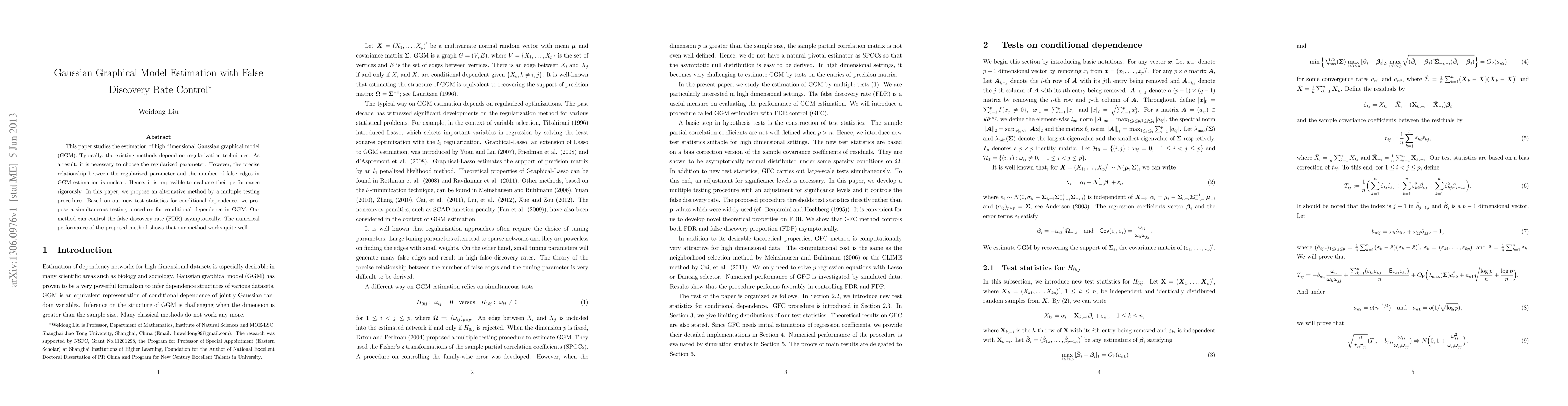This paper proposes a new method for estimating high-dimensional Gaussian graphical models using a multiple testing procedure to control the false discovery rate (FDR) asymptotically. The method provides a robust alternative to existing regularization techniques, demonstrating improved numerical performance.