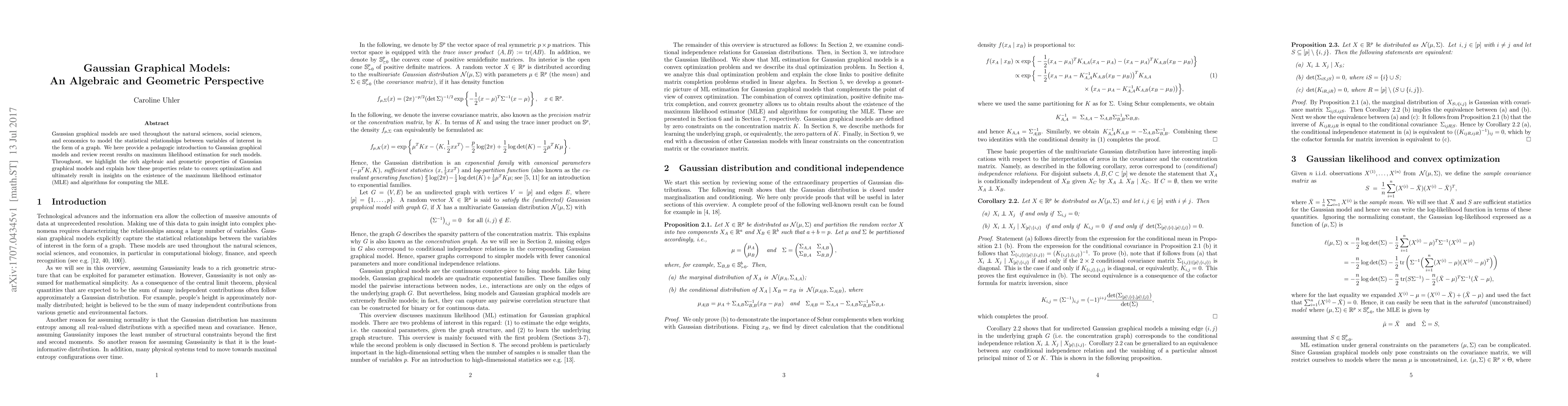 This paper offers a comprehensive introduction to Gaussian graphical models, emphasizing their algebraic and geometric properties. It reviews recent advancements in maximum likelihood estimation, linking these properties to convex optimization and insights on the existence of the maximum likelihood estimator.
