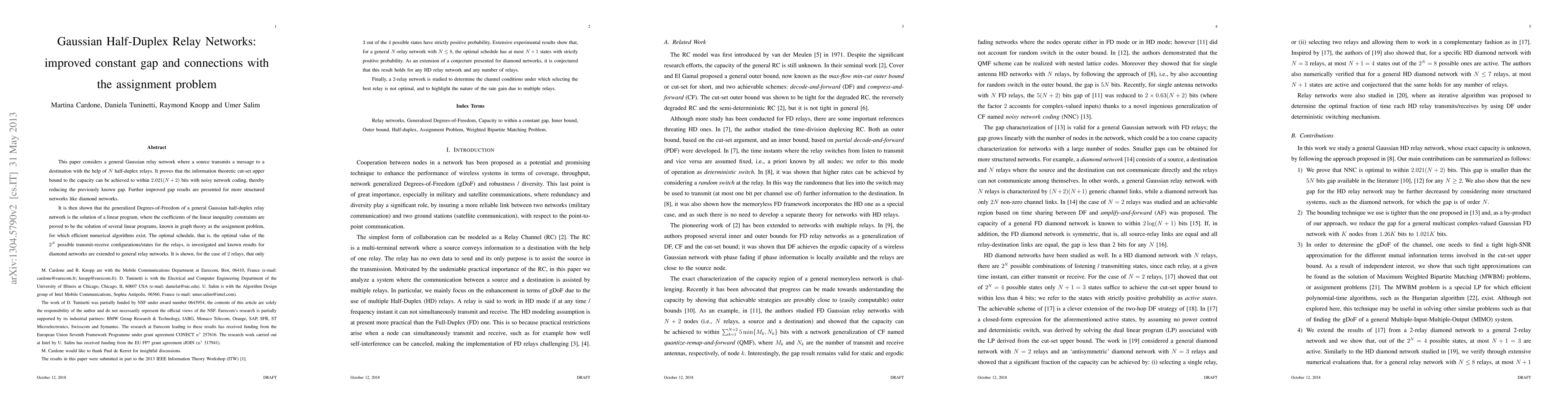 This paper improves the constant gap in Gaussian half-duplex relay networks by reducing the gap to within 2.021(N + 2) bits using noisy network coding. It also connects the generalized Degrees-of-Freedom to the assignment problem, providing efficient numerical algorithms for optimal relay scheduling.