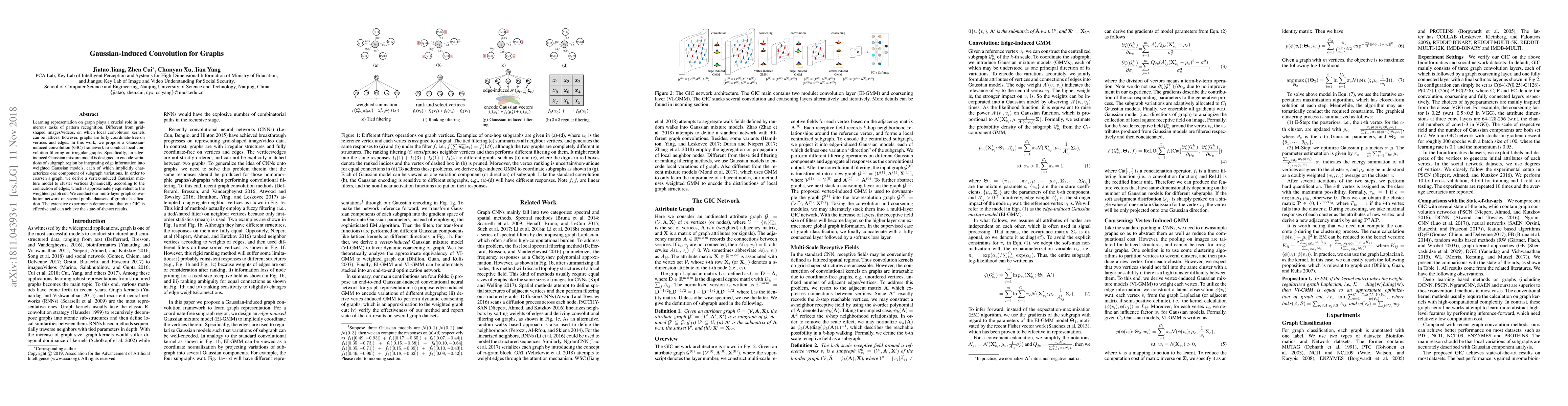 This paper proposes a Gaussian-induced convolution (GIC) framework for local convolution filtering on irregular graphs, using edge-induced Gaussian mixture models to encode subgraph variations. The method also employs a vertex-induced Gaussian mixture model for dynamic vertex clustering, achieving state-of-the-art results in graph classification tasks.