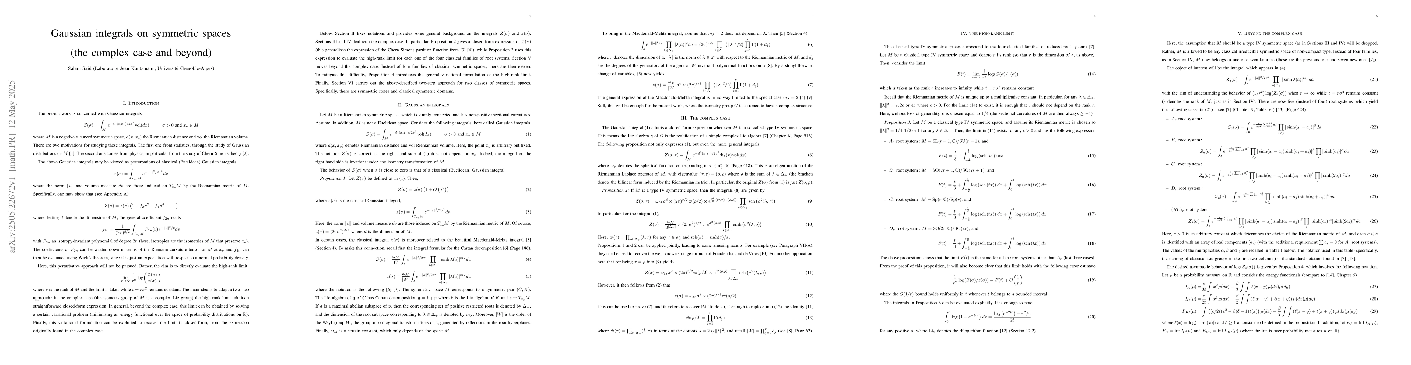 This work contributes to understanding high-rank limits of Gaussian integrals on symmetric spaces, which is crucial for applications in probability theory, representation theory, and harmonic analysis.