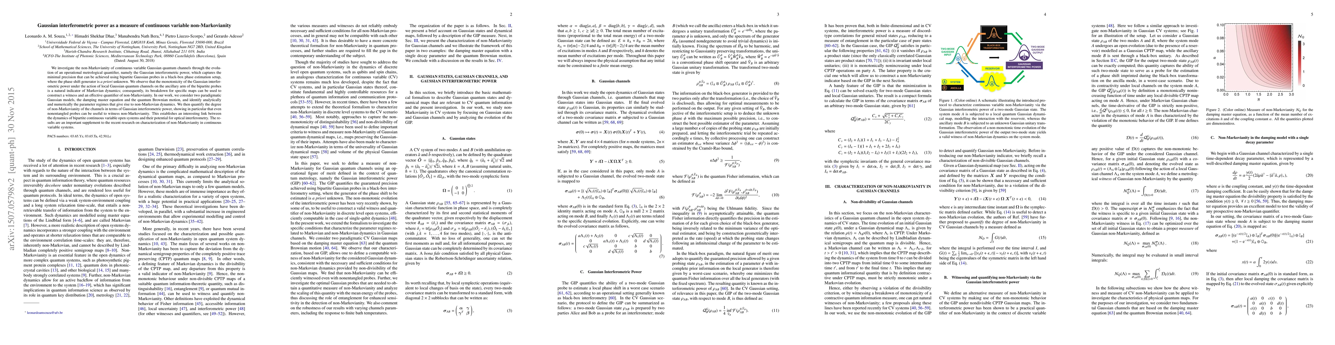 This paper investigates non-Markovianity in continuous variable Gaussian quantum channels using Gaussian interferometric power, revealing that its breakdown indicates non-Markovian dynamics. The study identifies parameter regimes in Gaussian models that lead to non-Markovianity and quantifies the degree of non-Markovianity, showing that nonentangled probes can also detect it, linking dynamics to optical interferometry.