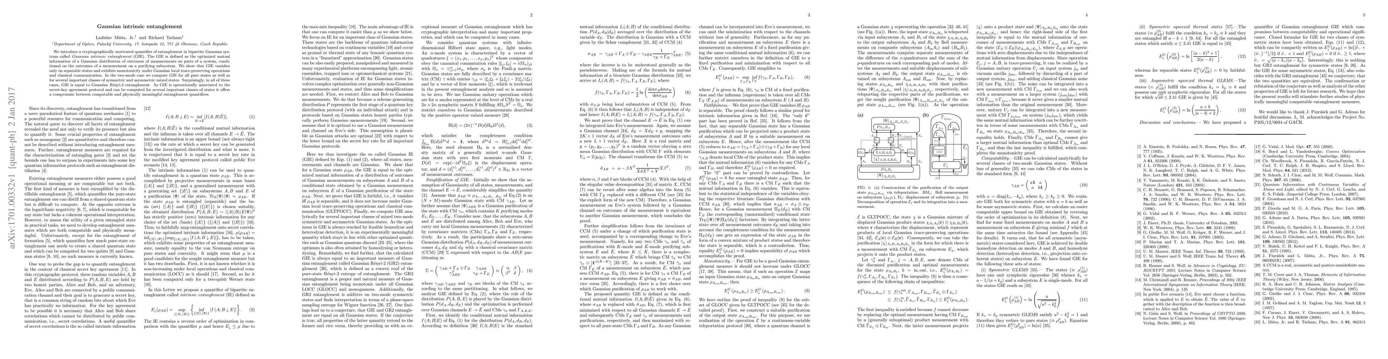 Researchers introduce Gaussian intrinsic entanglement (GIE), a measure of entanglement in bipartite Gaussian systems that is both operationally meaningful and computationally feasible. GIE equals Gaussian Rényi-2 entanglement for various classes of states, offering a compromise between computable and physically meaningful entanglement quantifiers.
