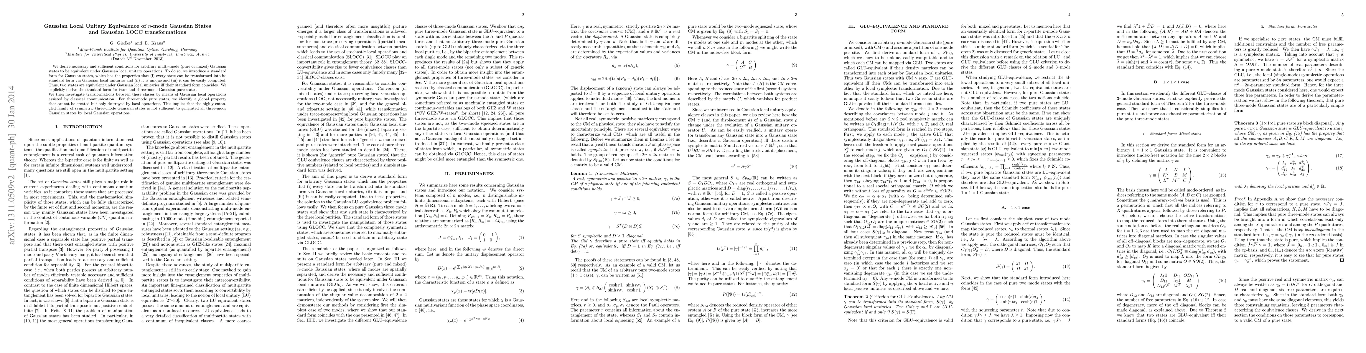 This paper establishes conditions for Gaussian local unitary equivalence of multi-mode Gaussian states and explores transformations via local operations and classical communication. It introduces a standard form for Gaussian states that facilitates the determination of equivalence and derives this form for two- and three-mode pure states.
