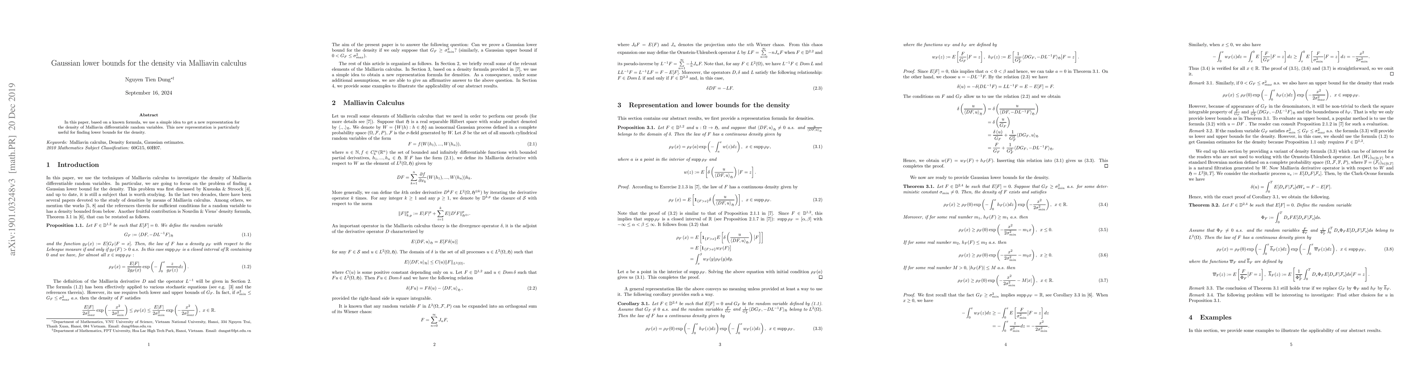 This paper uses Malliavin calculus to find a new representation for the density of random variables, leading to improved lower bounds for density estimation. The approach simplifies finding density-based bounds and could have implications for statistical inference.