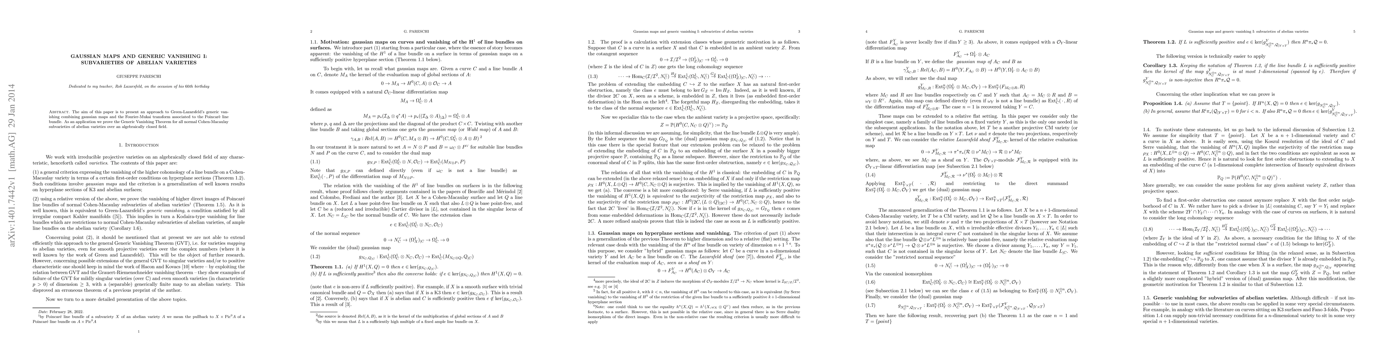 We present an approach to Green-Lazarsfeld's generic vanishing combining gaussian maps and the Fourier-Mukai transform associated to the Poincar\`e line bundle. As an application we prove the Generic Vanishing Theorem for all normal Cohen-Macaulay subvarieties of abelian varieties over an algebraically closed field. This paper is a reworking of part of arXiv:math/0310026v2 [math.AG], which contained a mistake.