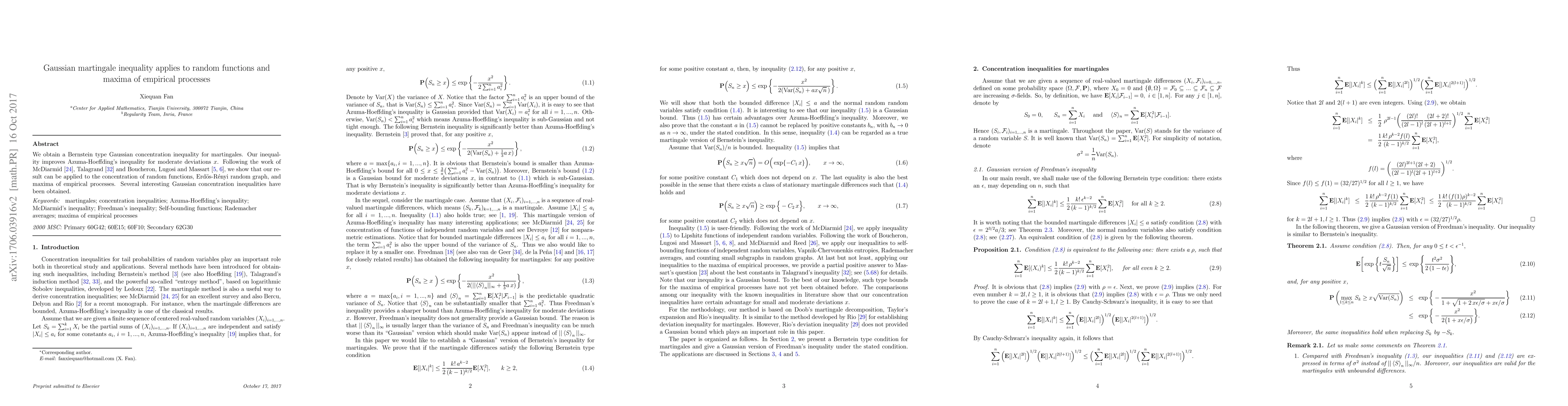We obtain a Bernstein type Gaussian concentration inequality for martingales. Our inequality improves the Azuma-Hoeffding inequality for moderate deviations $x$. Following the work of McDiarmid (1989), Talagrand (1996) and Boucheron, Lugosi and Massart (2000,2003), we show that our result can be applied to the concentration of random functions, Erd\"{o}s-R\'{e}nyi random graph, and maxima of empirical processes. Several interesting Gaussian concentration inequalities have been obtained.